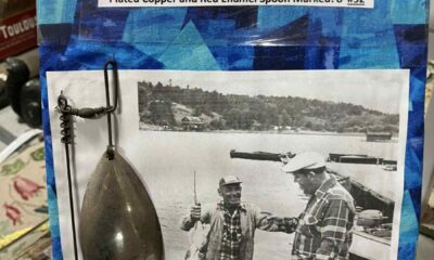 $15 Antique Muskie spinner fishing lure- has silver plated copper and red enamel spoon marked: 8 by #52 Inter Urban Antiques