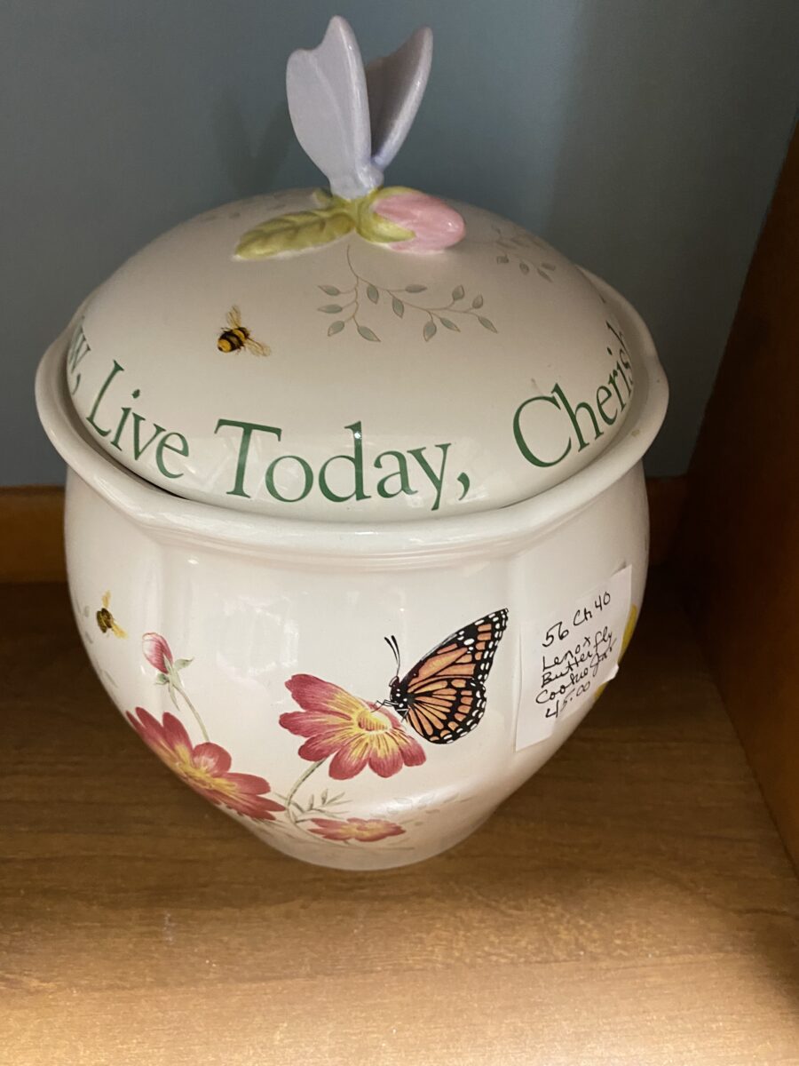 The cookie jar has no cracks or chips.  Cost is $45.00.  Code is Ch40.  Dealer 56 can be reached at mitricity@aol.com