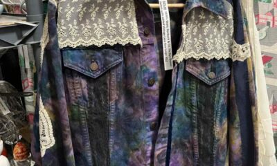 Updated as sold 6/24/2025 $25, 1970’s Sears, Roebuck & Co. Tie Dye Denim jacket with added vintage laze size large by #52 Inter Urban Antiques