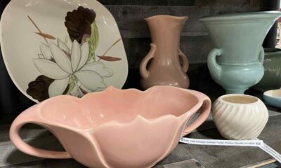 $28, 1940’s Haeger Salmon “Tulip” planter – double handled by #52 Inter Urban Antiques