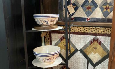 $58 Graduated 3 bowl mixing bowl set by #26 D&D (Lower three bowls) $26 Yellowware sponged batter bowl by #26 D&D (Top bowl with handle)